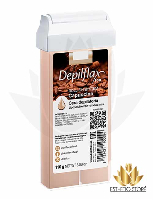 Cera Depilación Rollon Capuccino 110g – Depilflax: Su novedoso sistema roll-on permite una depilación más rápida y efectiva. | ESTHETIC STORE