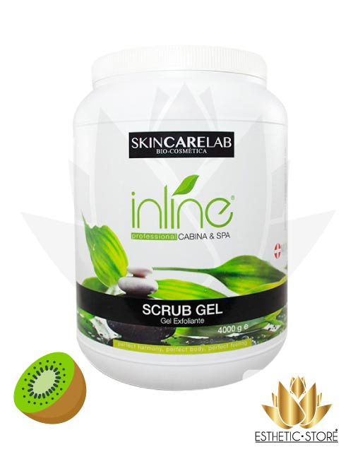 Gel Exfoliante Kiwi 4000g – Inline: Gránulos de cuarzo y semillas de durazno. Promover la renovación de la piel y ejerce una acción anti envejecimiento.